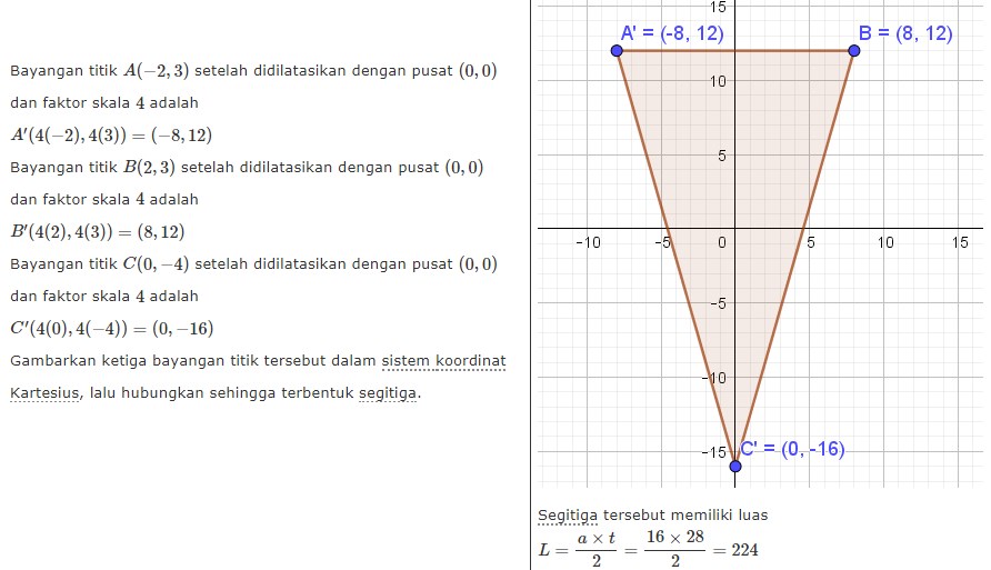 Soal dan pembahasan transformasi geometri. Tentukan bayangan titik (9, 3) oleh dilatasi o, 1/3!. Contoh soal dan pembahasan transformasi geometri. Transformasi geometri untuk tingkatan smp kelas 9 dibagi menjadi 4 bagian, mulai dari pencerminan (refleksi), pergeseran (translasi), perputaran (rotasi) dan . Belajar transformasi geometri lengkap soal dan pembahasan . Jika titik a(15,8) dicerminkan terhadap garis , maka bayangan titik a adalah titik a' dengan koordinat… Y = x + 1 . Transformasi pada bangun geometri merupakan suatu aturan yang memindahkan suatu bangun geometri dari satu posisi ke posisi lain dengan tidak . Latihan soal transformasi geometri smpfull description. Gambar tersebut adalah contoh refleksi terhadap. Ada 5 macam transformasi geometri yang dipelajari di tingkat sma, yaitu translasi (pergeseran), refleksi (pencerminan), rotasi (perputaran), . Contoh soal dan pembahasan transformasi geometri rotasi matematika wajib kelas xi#rotasi #transformasi #matematikacontoh soal dan pembahasan . Bayangan garis y = 2x + 2 yang dicerminkan terhadap garis y= x adalah:
